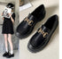 Mocasines gruesos, zapatos de plataforma con punta redonda, cadena de Metal, sin cordones