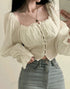 DAZY Camisa De Manga Acampanada Plisada Con Borde De Hongo Para Mujer