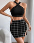 SHEIN SXY con tira cruzada Top halter & con estampado de cuadros Falda bajo con abertura