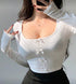Ivory Soft Coquette Top Manga Larga N25WQ01